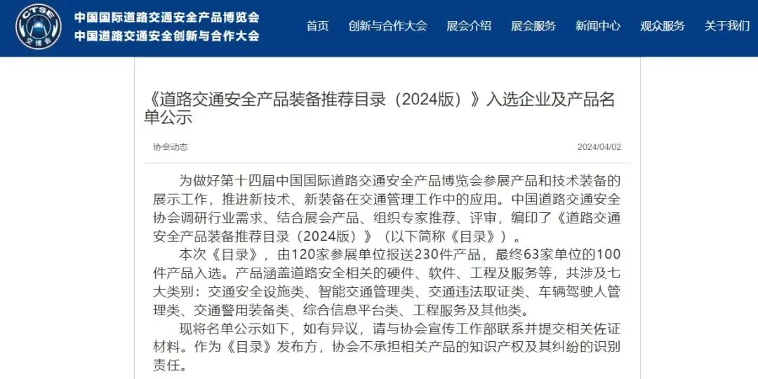 交博會(huì)期間,中國(guó)道路交通安全協(xié)會(huì)發(fā)布了《道路交通安全產(chǎn)品裝備推薦目錄(2024版)》,信路威警用鐵騎車(chē)載智能采集系統(tǒng)、路況預(yù)警系統(tǒng)從120家單位報(bào)送的230件產(chǎn)品中脫穎而出,榮耀入選。