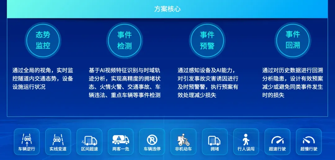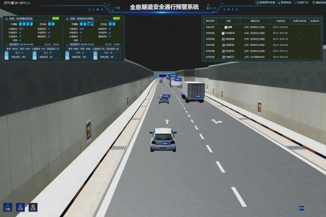 基于數(shù)字孿生底座可以建設(shè)多個(gè)數(shù)字化應(yīng)用場景,如:提供“兩客一?!钡忍胤N車輛全域跟蹤,實(shí)時(shí)孿生車輛的位置、速度等信息,并可以對隧道內(nèi)車輛逆行、實(shí)現(xiàn)變速、車輛違停等多種交通事件信息的實(shí)時(shí)動(dòng)態(tài)孿生,實(shí)現(xiàn)對隧道的智能化、數(shù)字化管理。