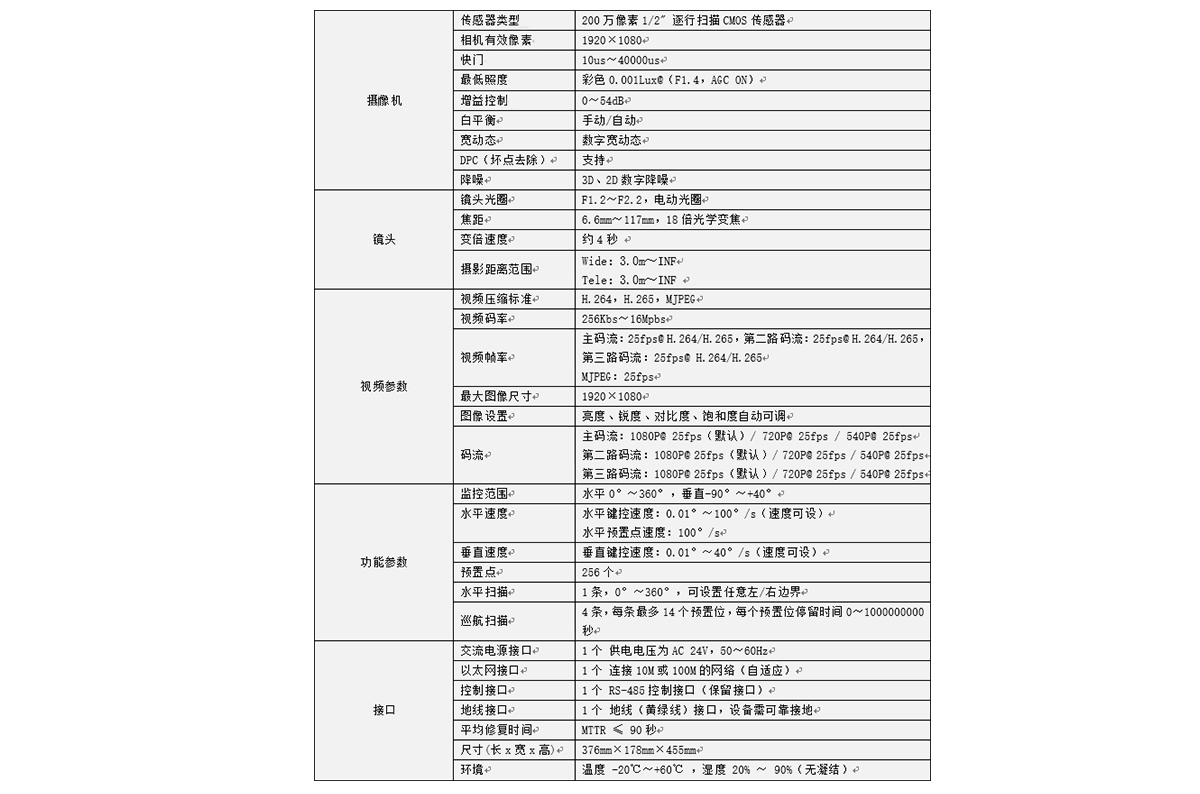 ◆監(jiān)控范圍 水平范圍360°,垂直范圍-90°~+40°