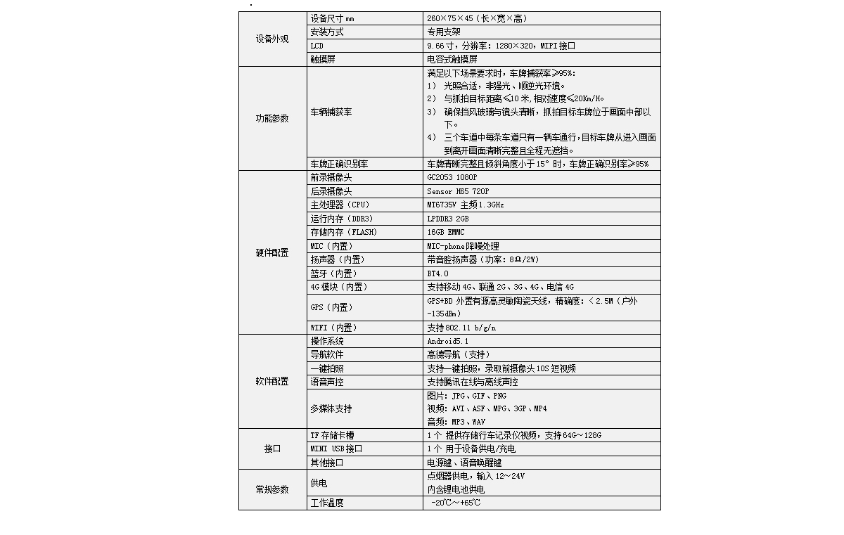 ◆視頻流輸出 前錄攝像頭高清1080P,后錄攝像頭高清720P
