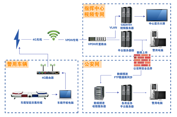 具備移動(dòng)警務(wù)應(yīng)急指揮中心功能,實(shí)現(xiàn)警車的定位、指揮調(diào)度和勤務(wù)督導(dǎo)。